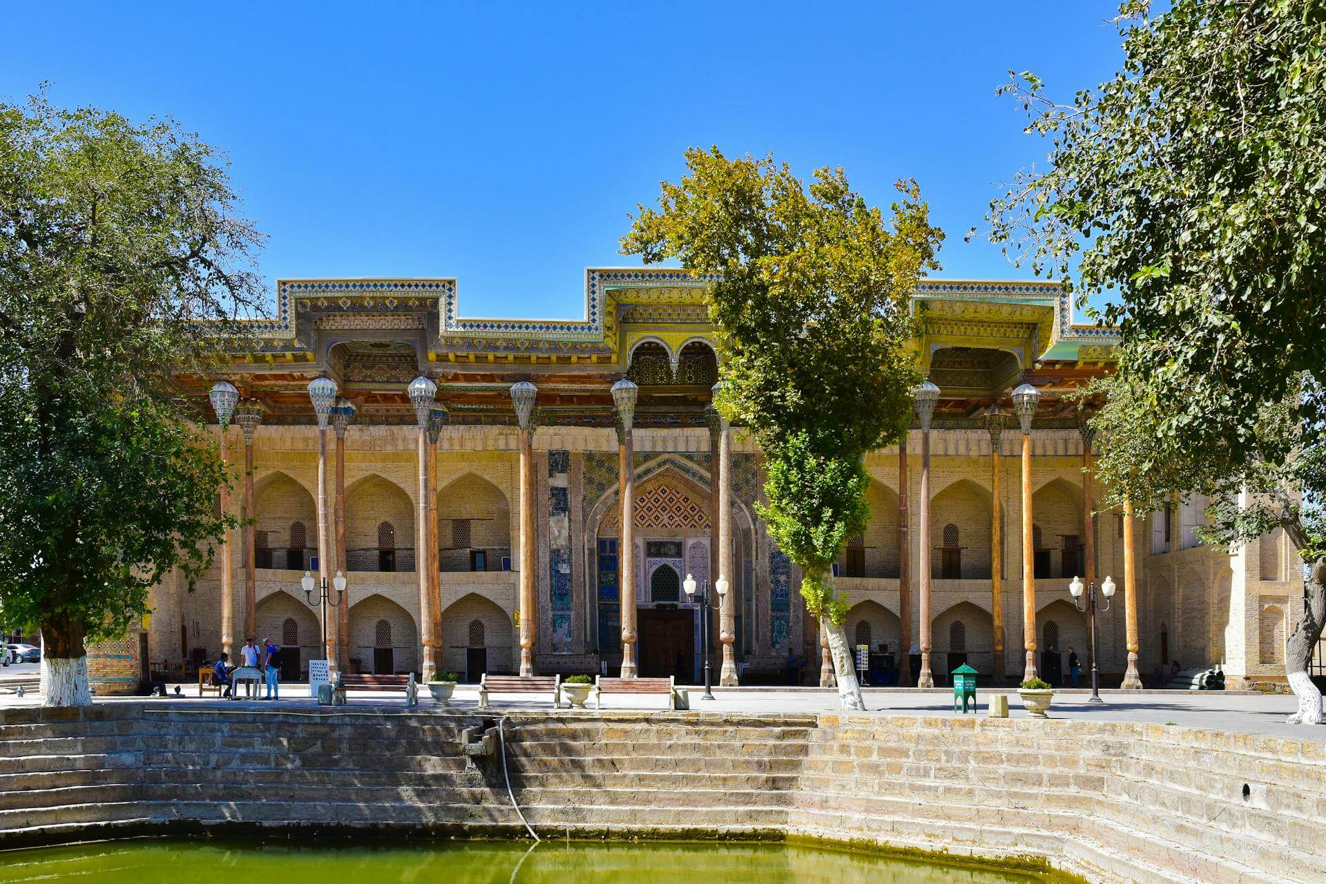 - The mosque is located near a water pool that enhanced its visual prominence. It remains an important example of traditional Bukharan religious architecture.